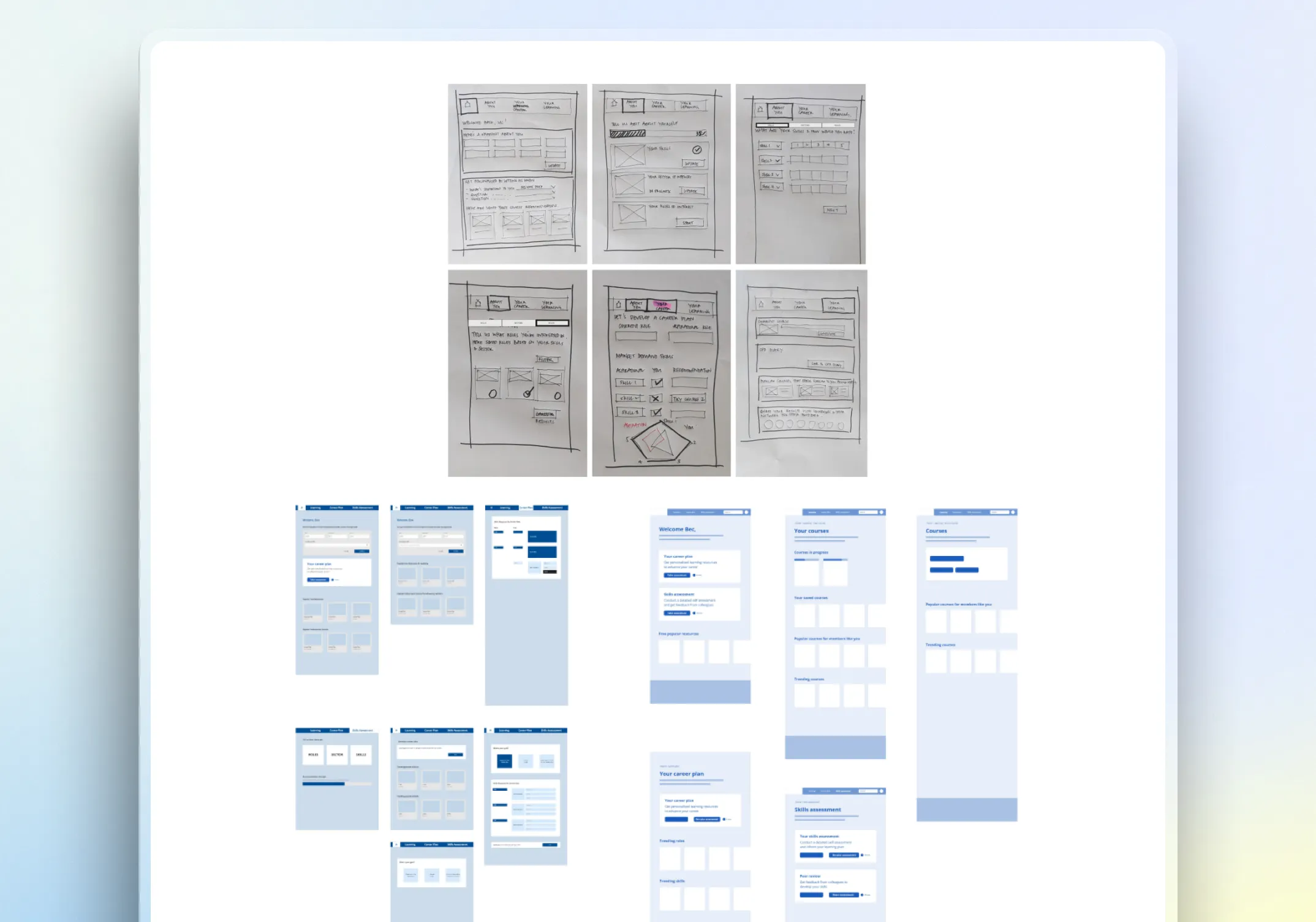 Starting with low-fidelity wireframes, where we brainstormed a series of concepts on paper before translating the shortlisted designs into the digital space.