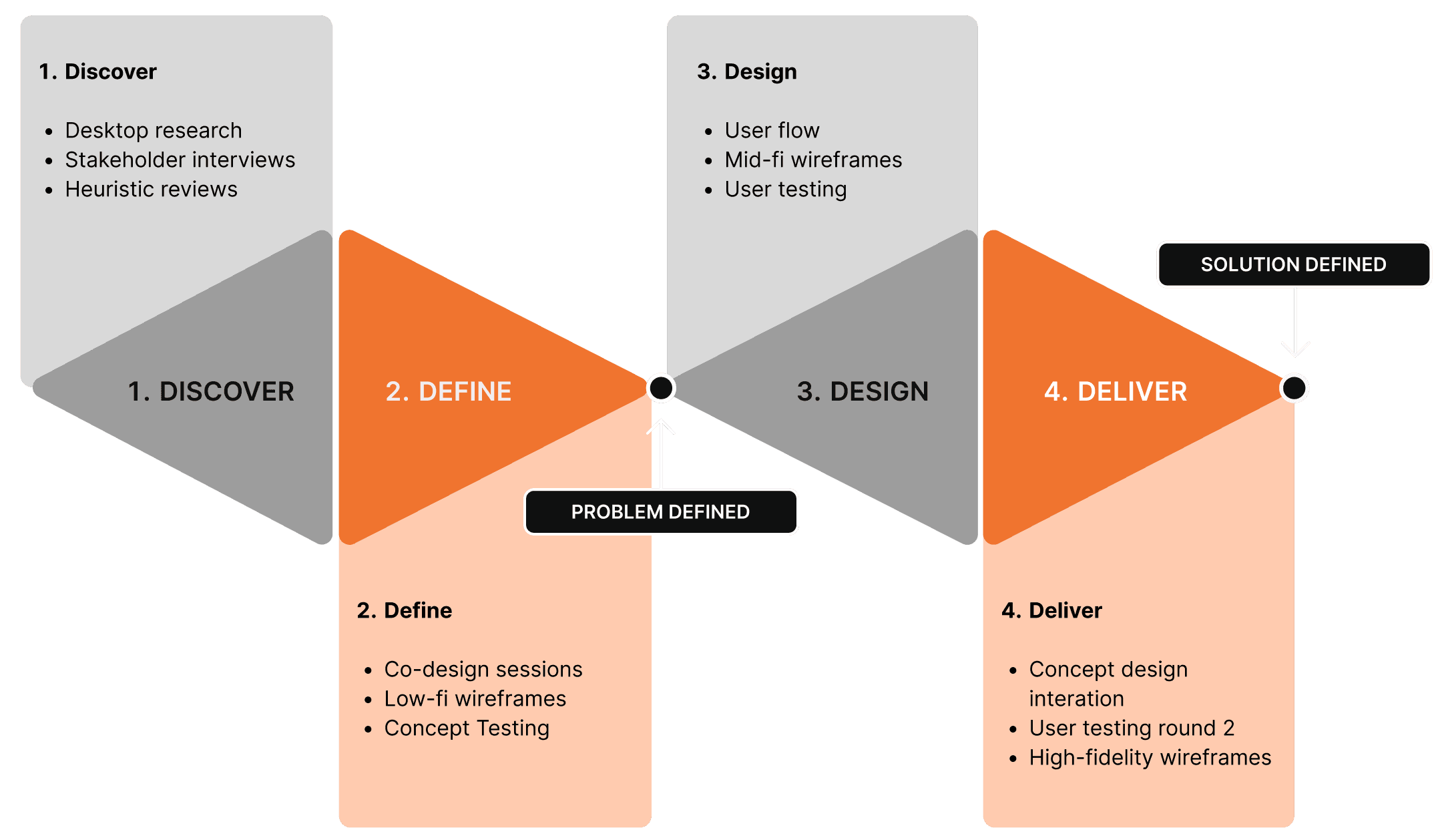 Guided by the Double Diamond approach, we structured our process into four phases—Discover, Define, Design, and Deliver—to ensure a robust, member-centered solution.