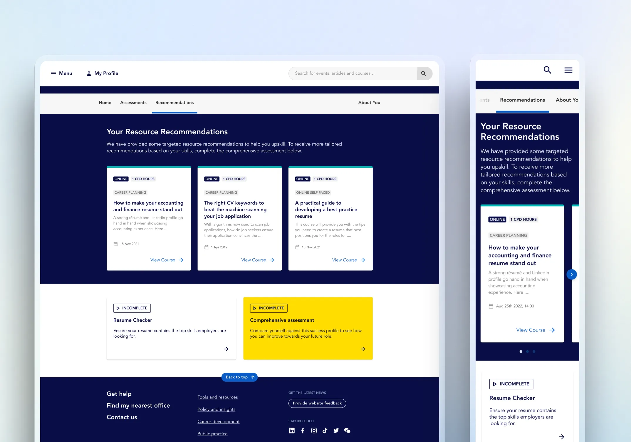 Although the work remained at early concept stage, the outcome was a validated direction that members responded to positively, describing it as innovative, easier to navigate, and more relevant to their career goals. The next step would be to take the concept into more detailed definition, confirm accessibility requirements, and translate the experience into a delivery-ready responsive design for implementation.