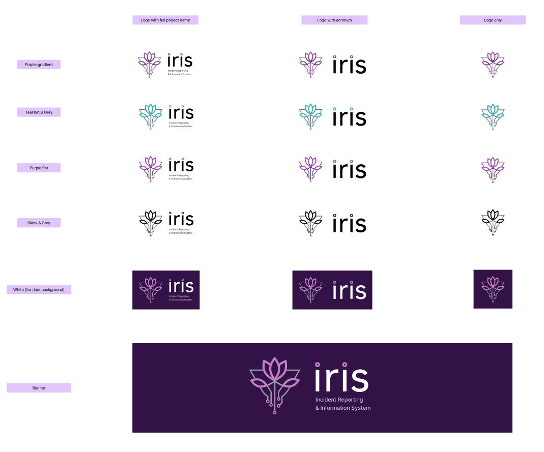 I explored several directions through sketching and concept development, testing ways to combine organic forms from the iris flower with geometric structures that reflected AEMO’s technical and data-driven context. After presenting concepts to the IRIS team, I refined the preferred direction into a stylised iris mark that balanced human meaning with structured precision. I also developed a supporting set of lockups and variations to ensure the identity could work across different formats and backgrounds.